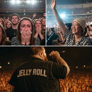 HE COULDN’T FINISH HIS SONG — SO 40,000 VOICES DID IT FOR HIM 💔🎶 Jelly Roll’s Emotional Moment in Nashville That Stopped the Crowd Cold Under the bright Nashville sky, Jelly…