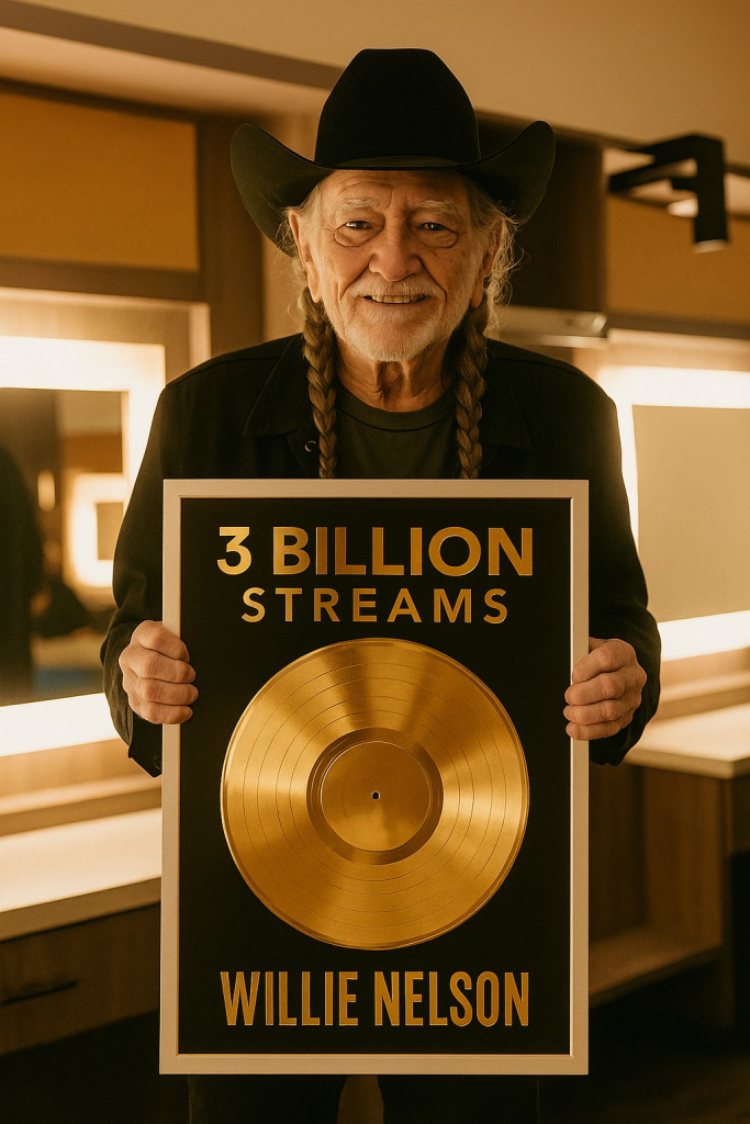 Backstage, the lights dimmed to a warm amber glow. Willie Nelson stood quietly, his hands folded around a gleaming Pandora plaque honoring over three billion streams — a number so staggering it barely seemed real.